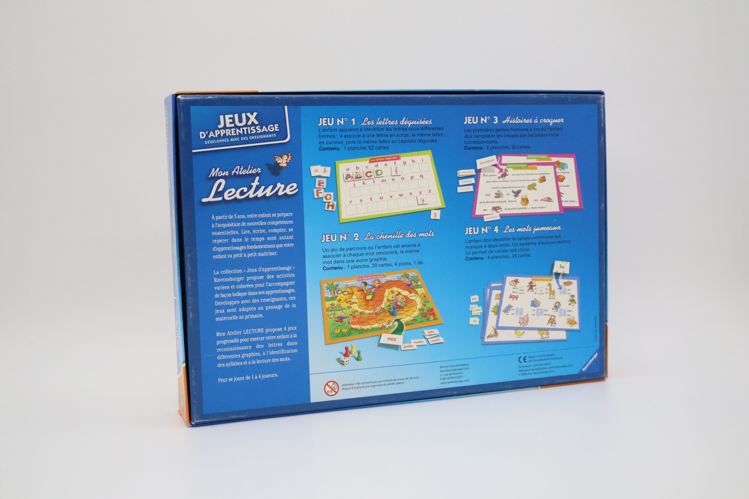 Mon atelier lecture propose 4 jeux progressifs pour exercer votre enfant à la reconnaissance des lettres dans différente graphies, à l’identification des syllabes et à la lecture des mots.